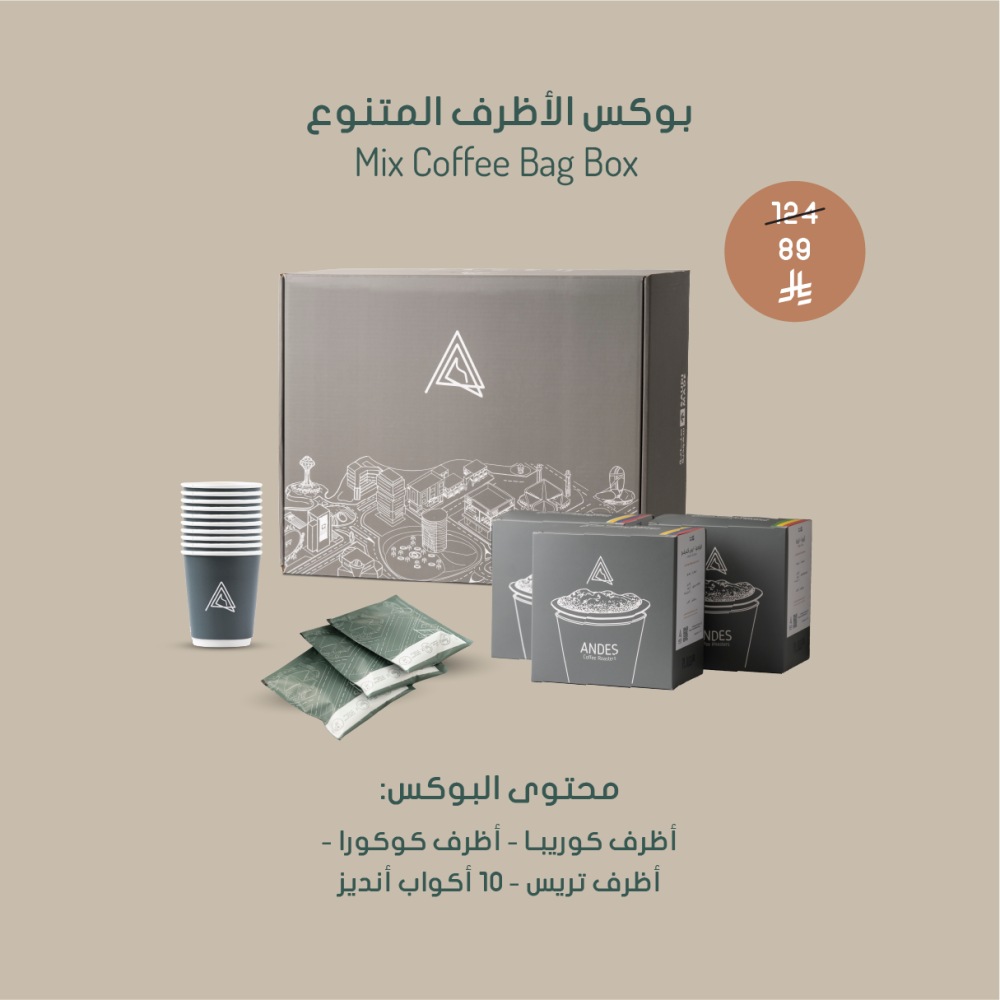 :مجموعة بوكس الأظرف يحتوي1- اظرف كولومبيا - تريس1- اظرف كولومبيا- كوكورا1-اظرف اثيوبيا - كوريبا10- كوب 9 اونصالاظرف بشكل دائري بتصميم مميز و يمكن تثبيتها على الكوب < كل عبوة تحتوي على خمسة أظرف >يحتوي كل منها على 15 جرام قهوة