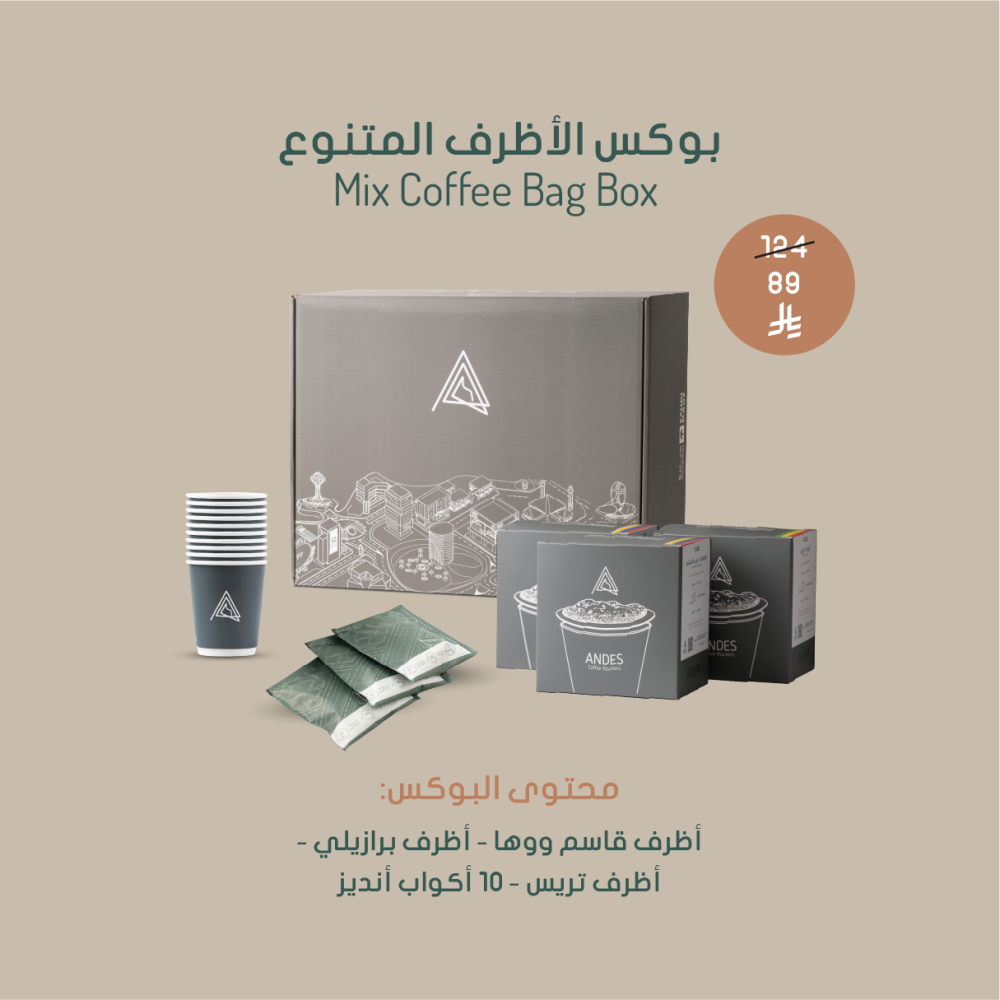 :مجموعة بوكس الأظرف يحتوي1- اظرف كولومبيا - تريس1- اظرف البرازيل- موجيانا1-اظرف اثيوبيا - قاسم ووها10- كوب 9 اونصالاظرف بشكل دائري بتصميم مميز و يمكن تثبيتها على الكوب < كل عبوة تحتوي على خمسة أظرف >يحتوي كل منها على 15 جرام قهوة